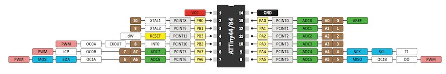 To begin coding it is useful to know the physical layout of the microcontroller which is where the Attiny data sheet comes in handy.