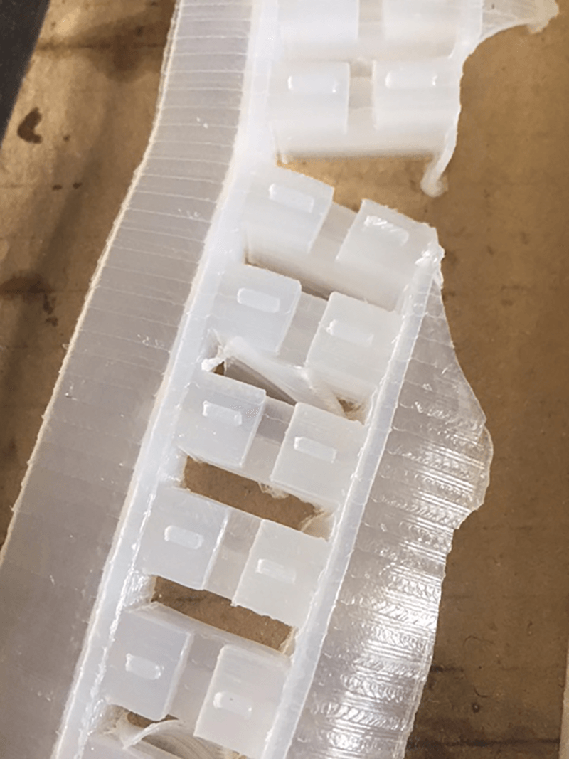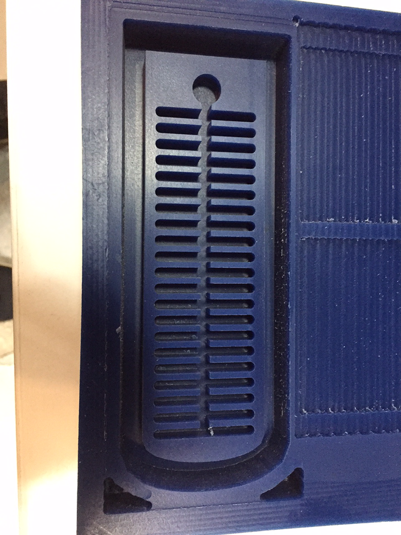 When both halves had set I lay a thin layer of silicon on the base layer and a placed the other half on top. I pasted extra silicon around the edge to ensure a good seal. When it was time to test I had clearly fallen upon the main problem that can occur with this piece. Because the air channel layer is so thin, it is at risk of getting blocked. Unfortunately this was the case and only the first chamer inflated.