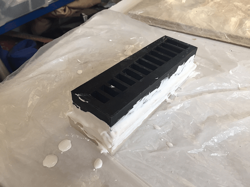 For my next attempt I sealed the mold using some plaster. This worked perfectly and the mold was filled and allowed to set. It was difficult to remove the cast piece as the texture of the 3D print gave a lot of surface area for the silicon to stick to. I eventually got it out however.