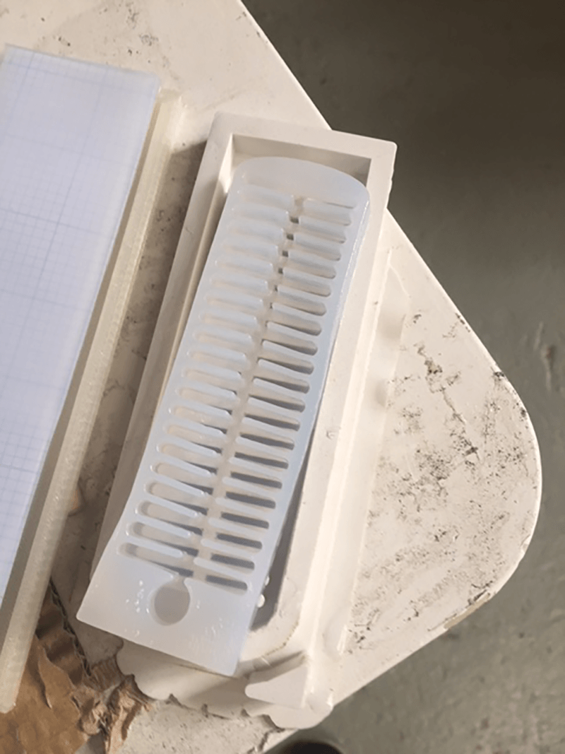 When casting with a material it is important to get the formulation right (read the instructions) and also to remove bubbles to avoid any weak spots or blemishes on the final piece. To avoid bubbles, one trick is to pour a very thin stream from high up, allowing any bubbles that may be in the mix to pop. Another technique is to use a vaccuum chamber, this causes the air bubbles to expand and rise to the surface. I used a combination of both for all my molding.
