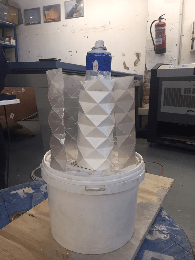 I used white silicon to create the mold for my robot, mixing according to the instructions with the activator and placing in the vaccum chamber to remove the bubbles. I left it at least half an hour in the vaccuum chamber until no new bubbles appeared. As the final piece would be effectivley a moving part I didnt want any blemishes in the mold. It was worth it and the piece came out very well.