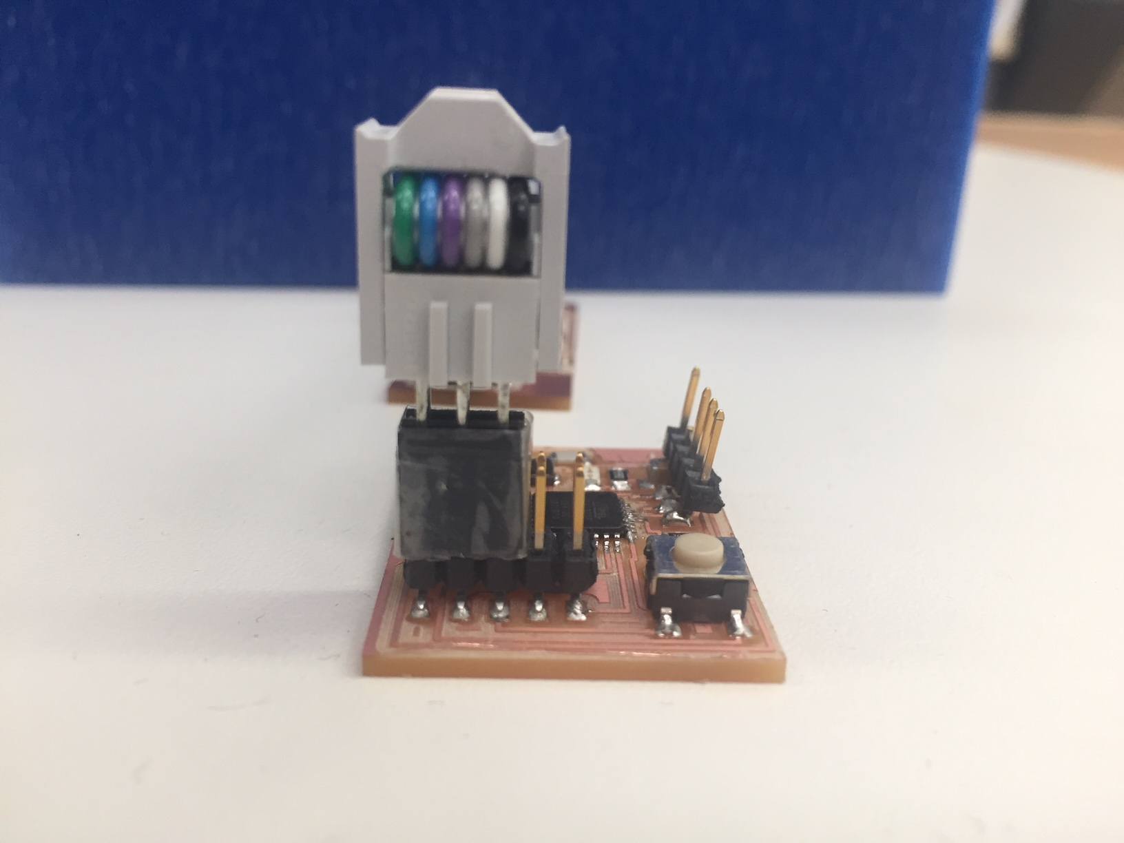 The connecting pins for my FABISP didn't allow me to connect the wires, so I created and little extension using some female headers. I tinned them slightly to get a tighter fit for into the header.
