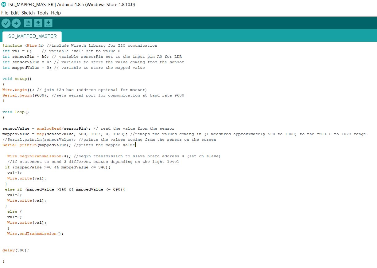 See below for the commented code for the master LDR and slave RGB.