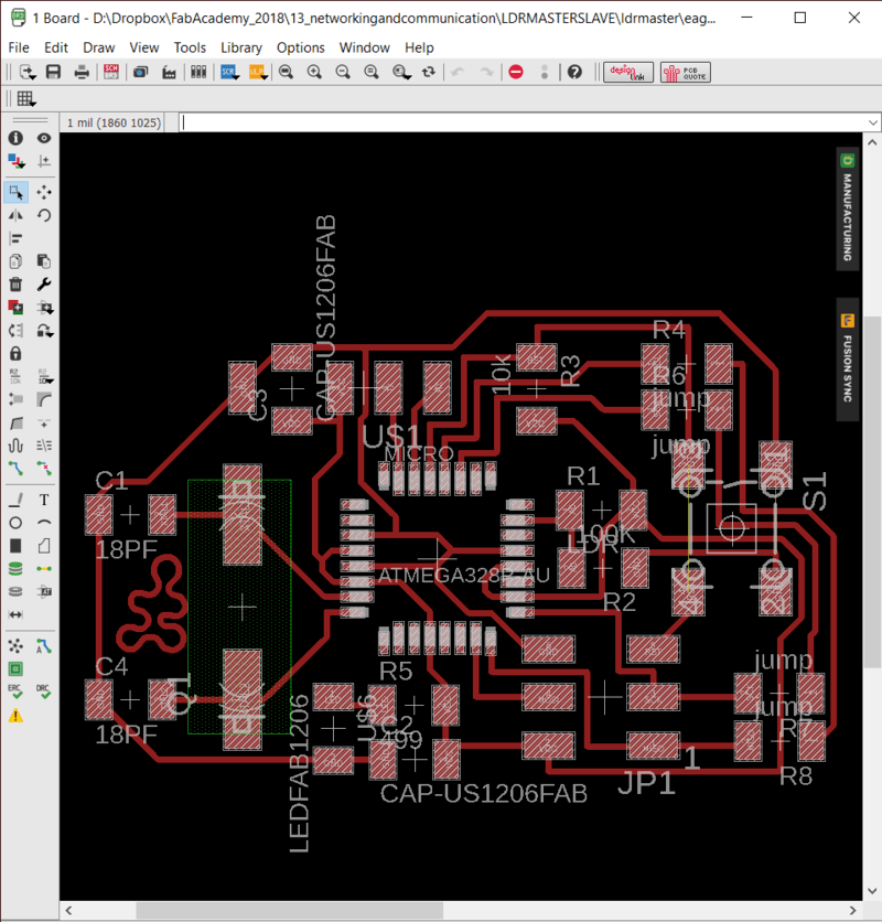 I populated my master board. I ended up changing the resistor a few times and then replacing my LDR with a through hole componenet as I wasn't getting the resolution I was hoping for with the LDR initially.