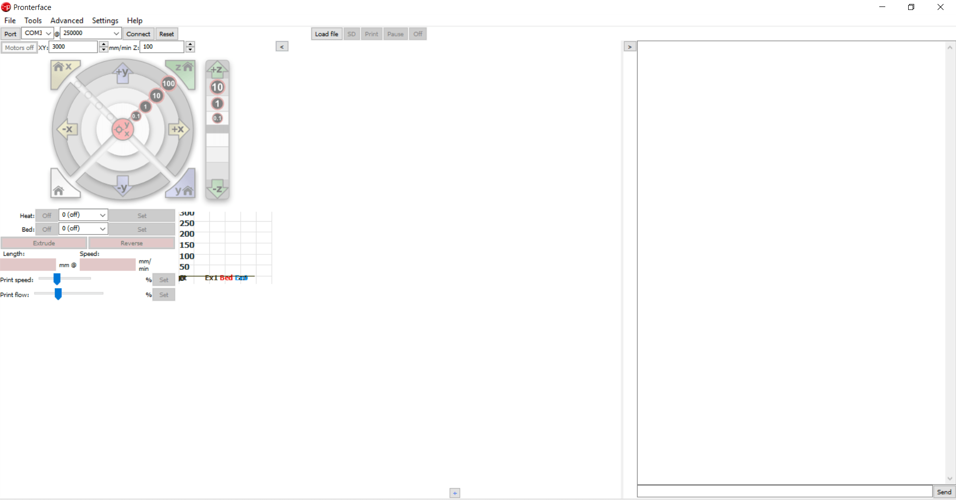 The grasshopper code creates and saves out the gcode to a .gcode file. Using pronter face it is just a case of opening the file and clicking print.