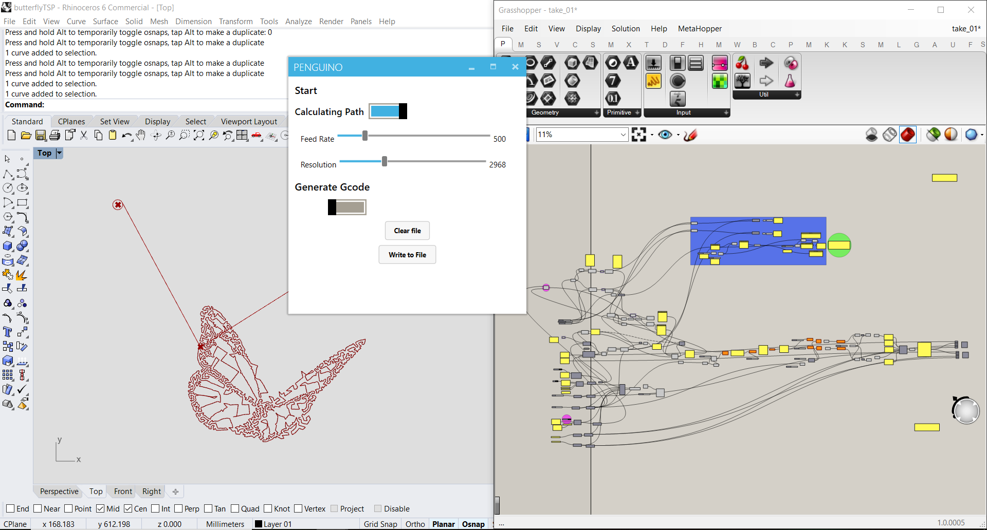 I had a play with using the HumanUI plugin for grasshopper. This allows us to create a more user-friendly interface to control the generation of gcode. The "spaghetti jusntion" of wires can sometimes be intimidating to those not familiar with grasshopper