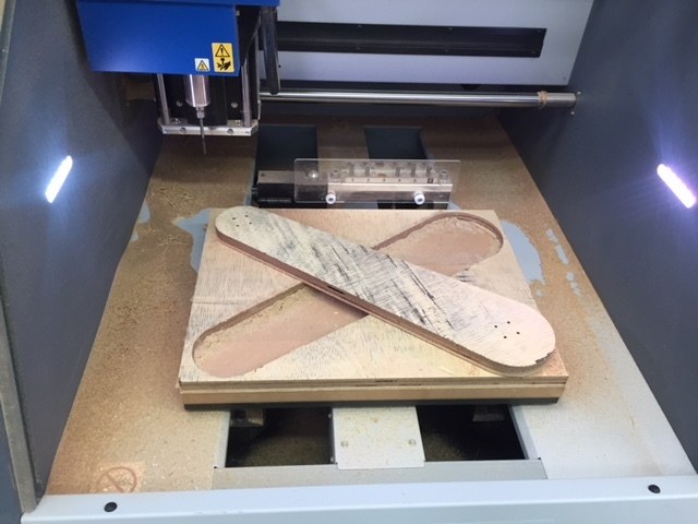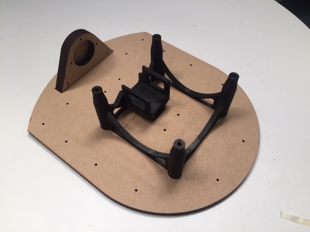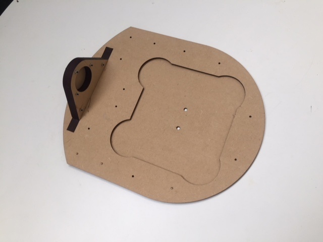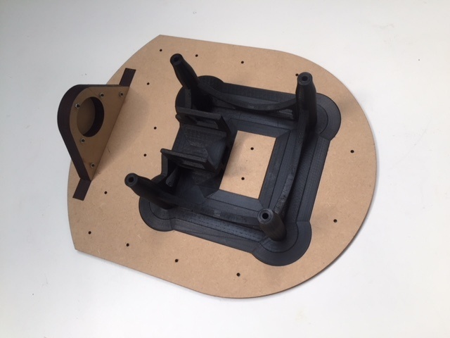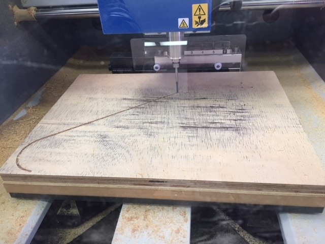 There was a grand plan to create the whole robot out of ply. I realise this is not the most structurally stable of materials, but would have looked beautiful in the end. I also considered it a good way to prototype, but it actually ended up taking a very long time on our MDX-50.