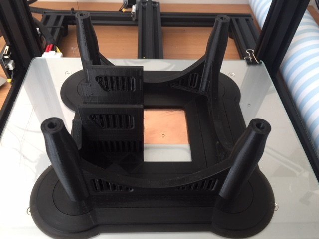 I 3D printed the base of my roobot that housed the first axis stepper and held up the lazy susan and large grears. It was a joy to design and one of the largest prints I have ever done taking 19 hours in total - fortunately no problem for our creality. It did the job perfectly first time and you can see how the base is built up in the following images with the laser cut MDF parts.