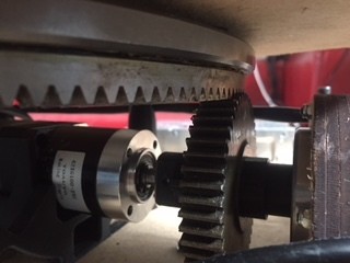 I used a couple larger gears described above, this was as they were available and to translate horizontal rotation into vertical rotation. I could have also used a belt system as well. To get the torque I required at each stage I used premade planetary gears bought from china. These were 1/42 on the first axis and 1/100 on the 2nd axis Nema23. When seeing the movement of the first axis, my calculations were not correct - this was eventually put down to the 1/42 gear not being specified correctly and I had to put in an error factor which fixed the calculation and gave the desired movement.