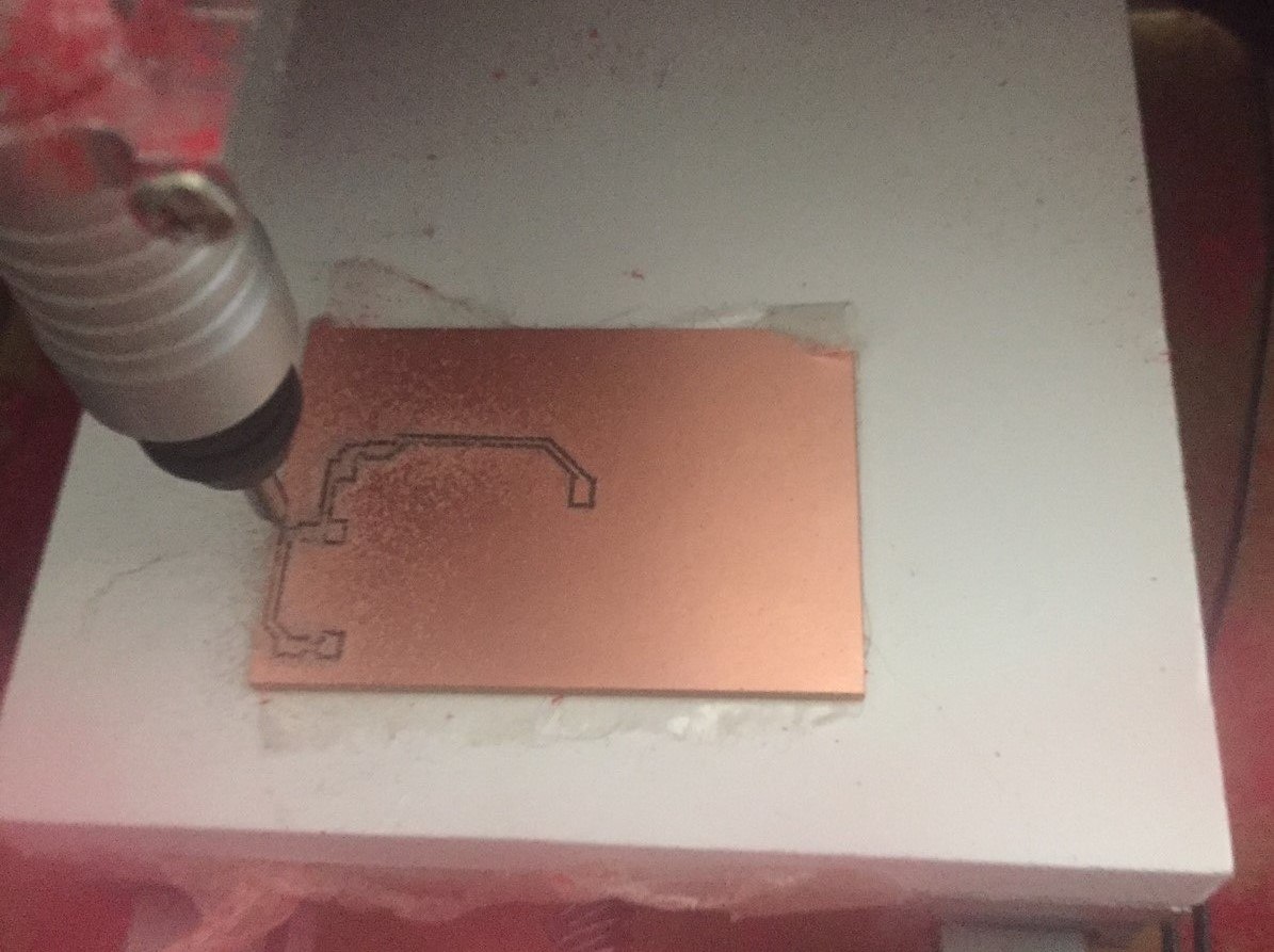 I had my first intro to gcode, which I envisage I will eventually use. I have a small mill at home called a Micromill. I didnt really like the way the code was produced and it messed up the scale of the board .png I produced (it recommendea site called Easel by Invetables). Using the grasshopper script I used to turn the eagle exported .dxf into a file for the vinyl cutter, I developed further a script that would take these traces and turn it into gcode. My initial experiments appear to be succesful, however I believe I have a problem with the Z access on the machine and it is hard to get it to the right height and to stay there.