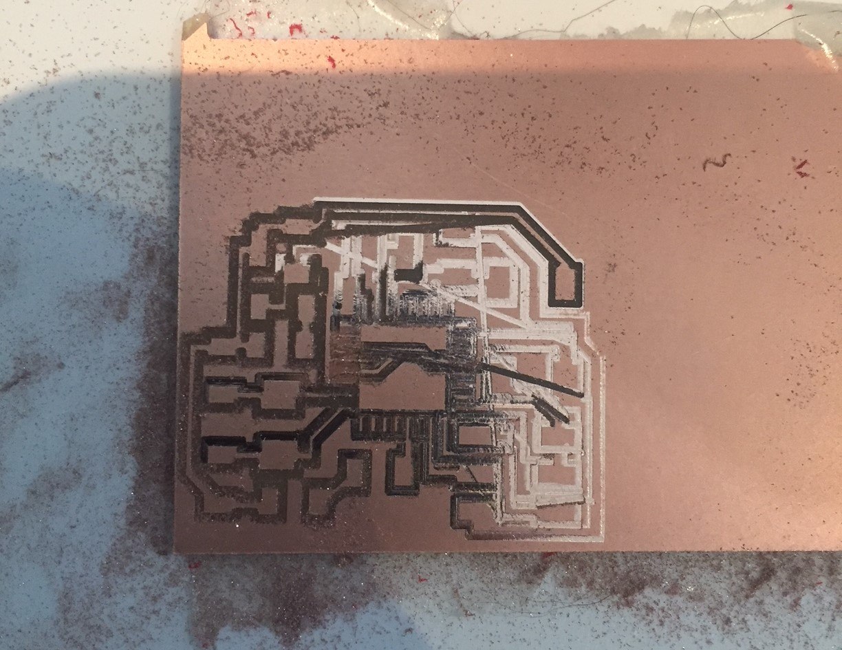Also having tweaked my code a bit I was finally getting a decent mill. I think this machine is designed for much less precise work (assuming my code is working as it should) beacuse some of the trace widths were very variable. So far I have just been using the 0.4mm bits, but I might try with 0.1mm and see what I get.