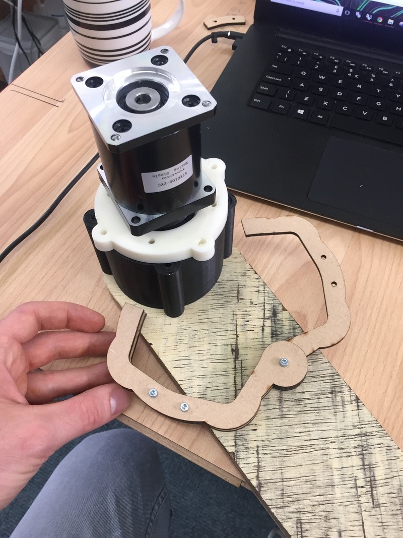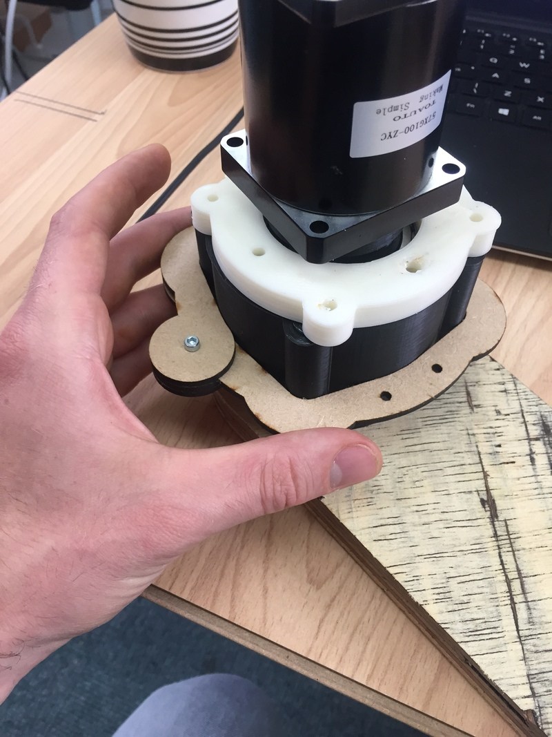 Success!.. So I went on to build a more detailed and stable model for the joint and to hold the NEMA23 motor and gear.