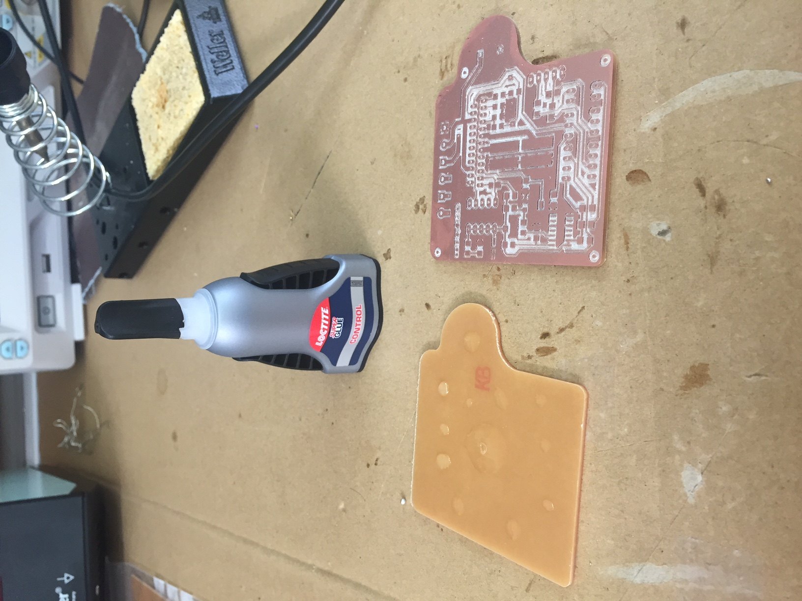 The next step was to stick the boards together and drill the holes for the through hole