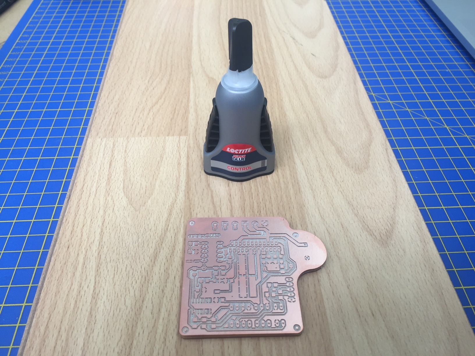 I used Locite super glue as it was available and simply stuck the two boards together after spreading the glue and aligning using the flat edges.