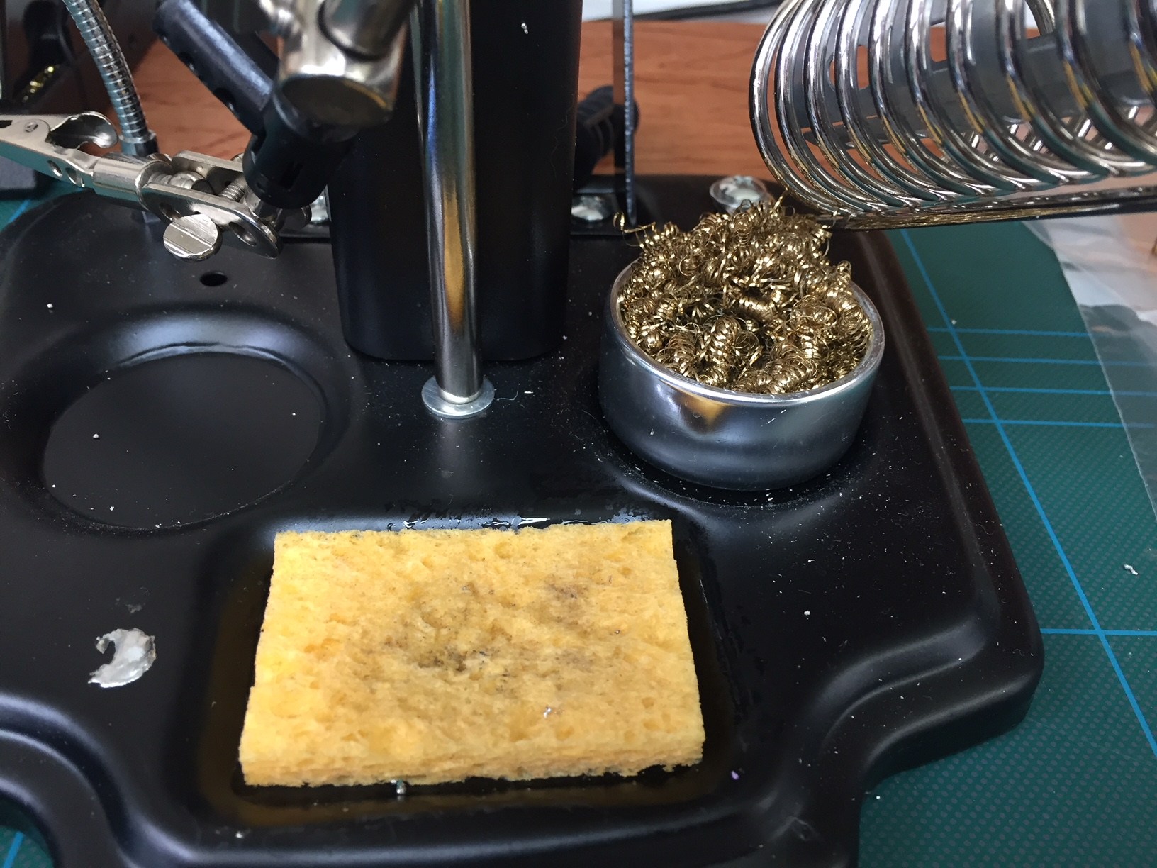 To over come this (and after a fair bit of solder braid and solder suckering) I found our bag of tips some of which had much narrower heads to get into the small gap. I also turned the temperature up from the usual 350 to 370. This meant my tip oxidised much quicker negating any increases so plenty of damp sponge and wire wool usage was required. Finally (I am not sure if this helped or not) I held a small piece of MDF against the heat dissipation area of the chip to stop the heat loss I was experiencing.