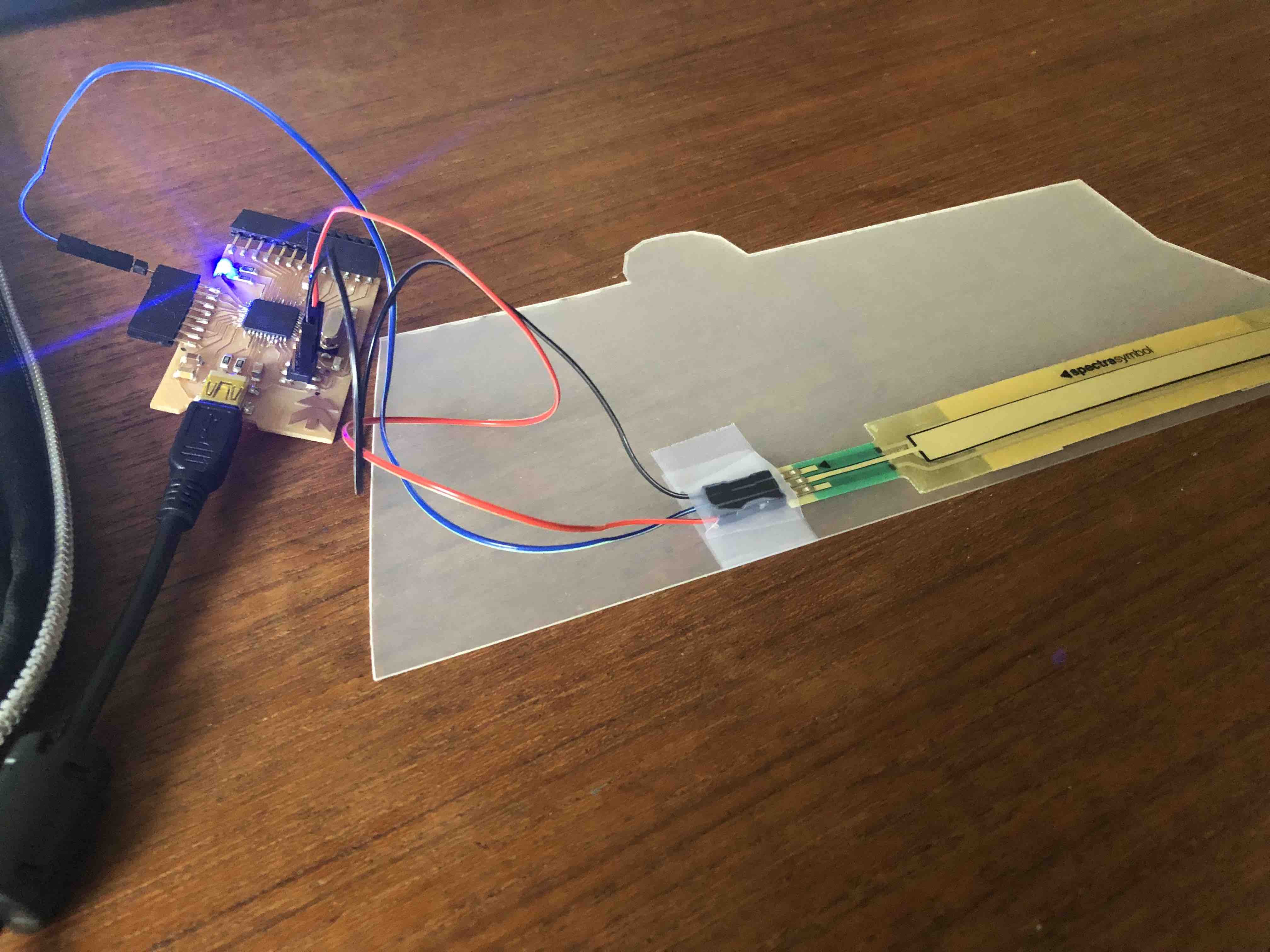 Quite honestly there is not much to say here. I simply followed the Soft Potentiometer - Hookup Guide I found and soldered on wires accordingly.Then I put it on a sheet of plastic so that it would stand out more but also be easier to manage and less prone to breakage.