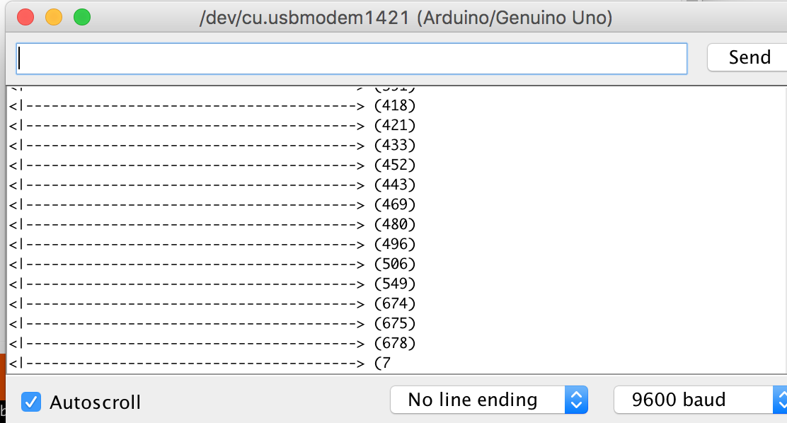 Now as you can see in the image below, the values for the softpot recorded in the serial monitor in Arduino were reacting to my touch.