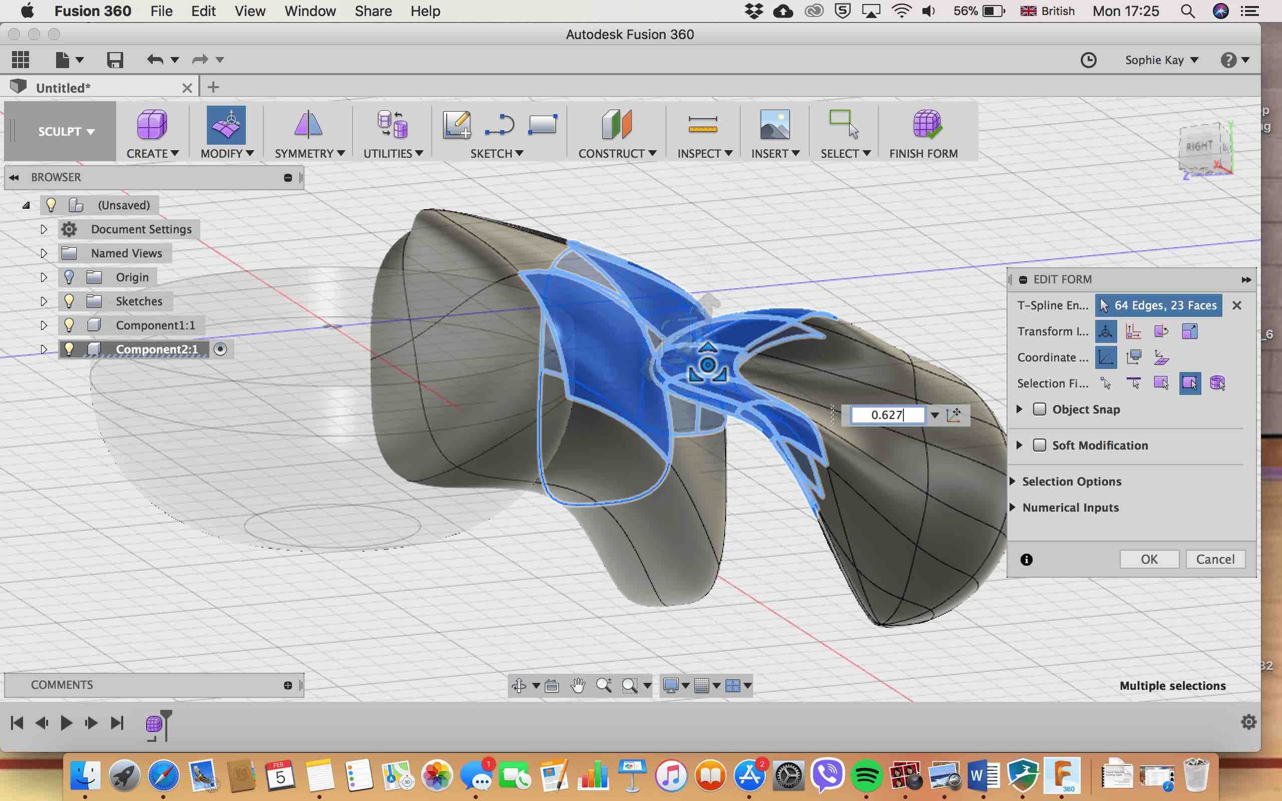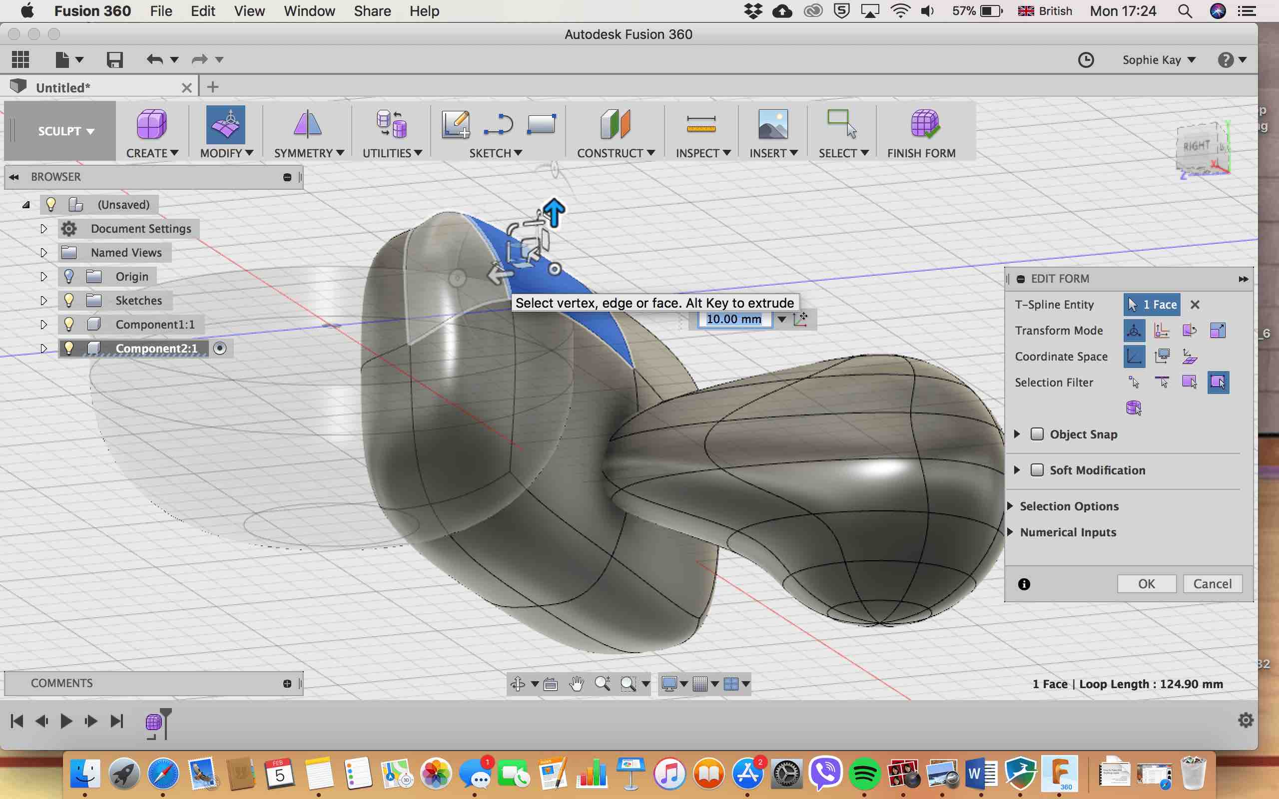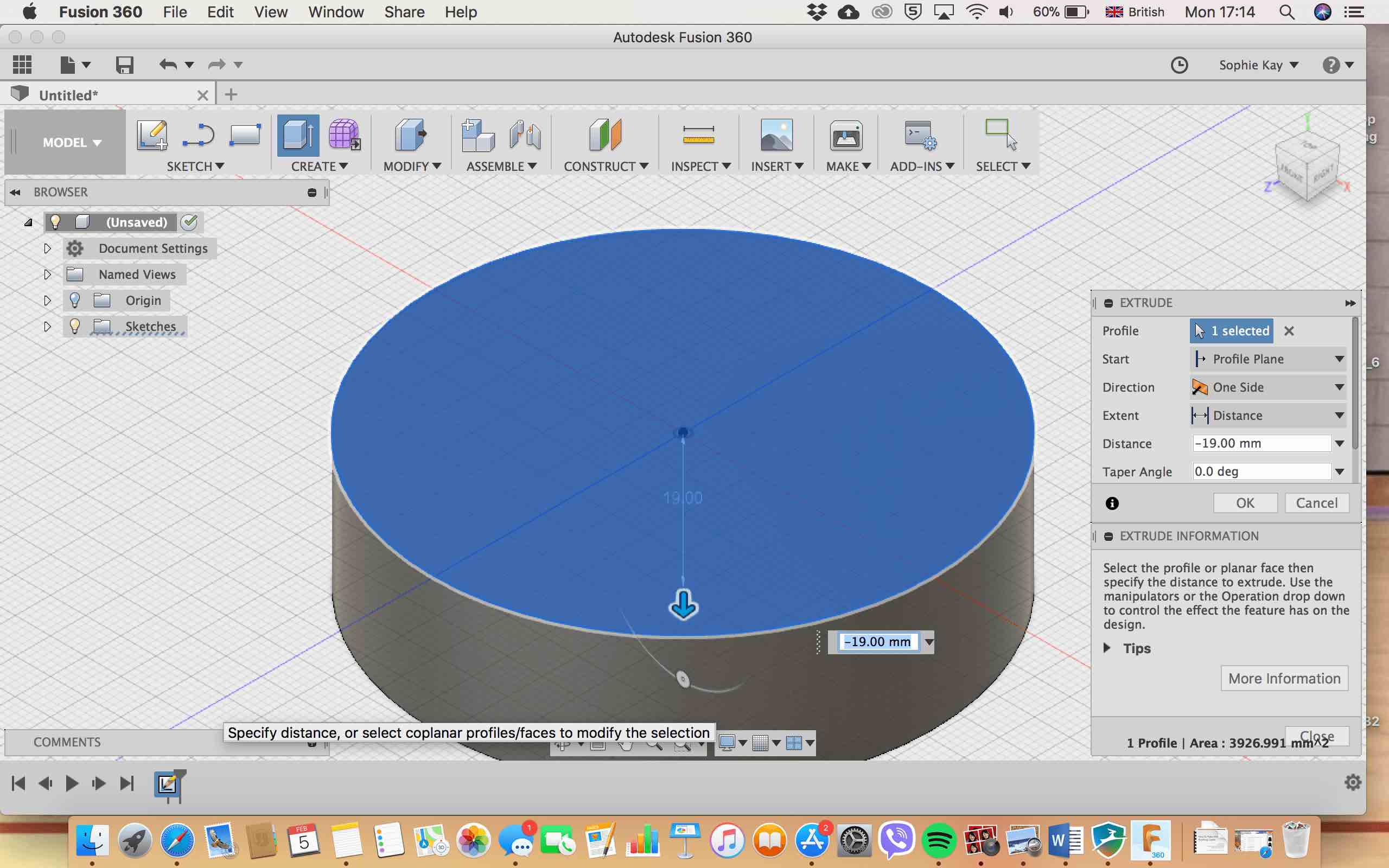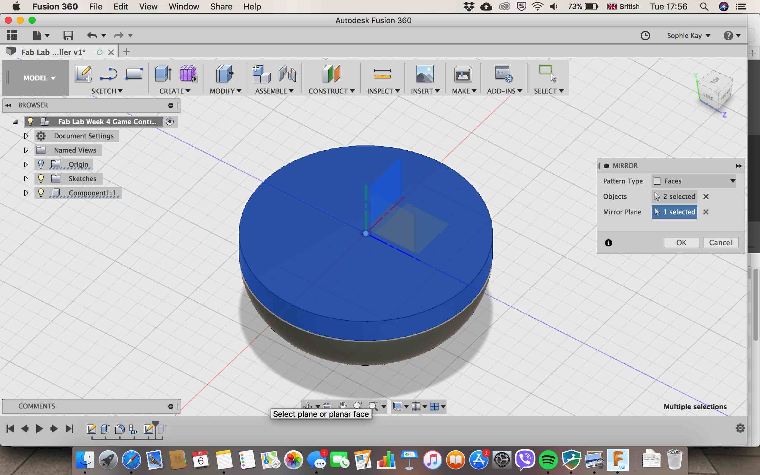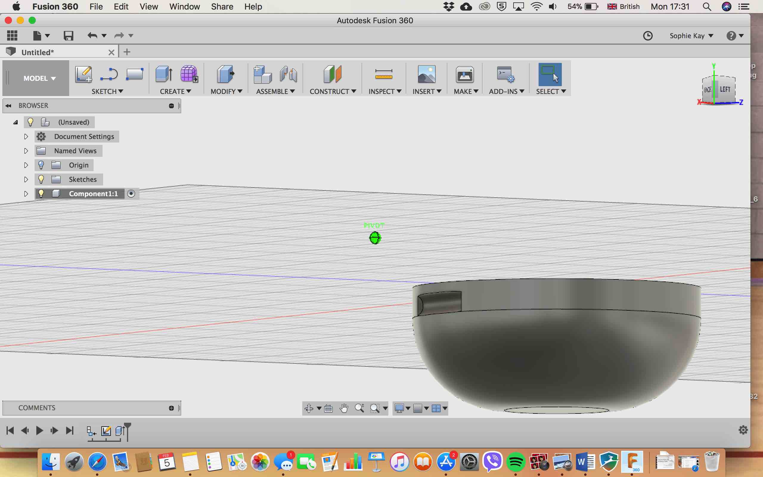Although I began already to try to make my sketch reality on fusion, I took some time out to play around a bit in Fusion to start to get a small idea of its various functionalities after having a small workshop session with Kyle:
