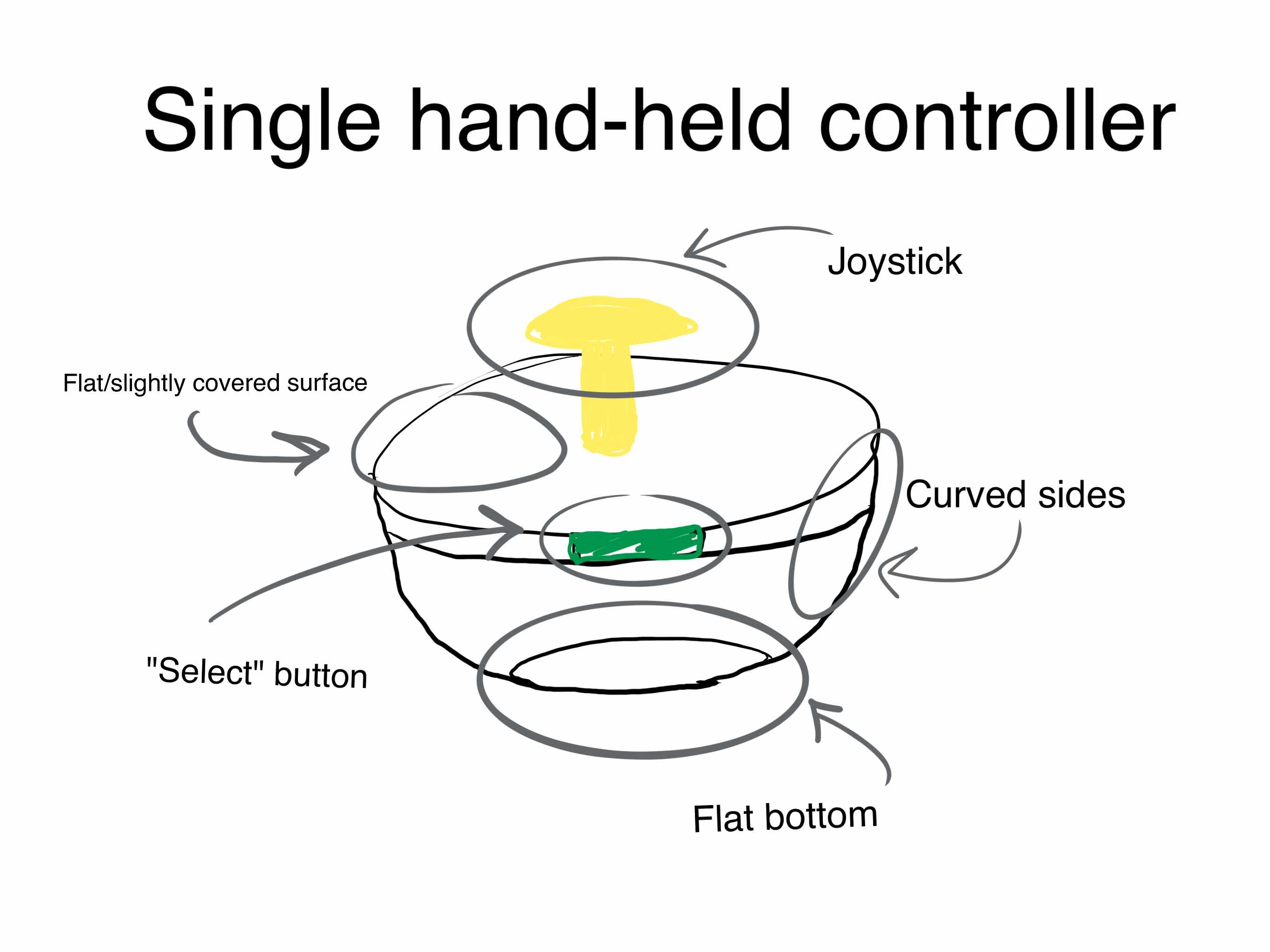 Originally I wanted to have my gloves be the controller. But as the days went on and I rethough the functionality requirements of my controller, it occured to me that because I only will need one button and a joystick, it might be nice to stick to the single hand-held controller idea.