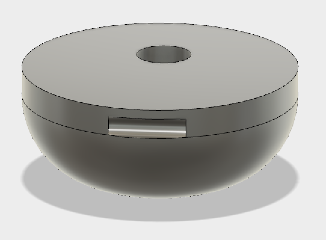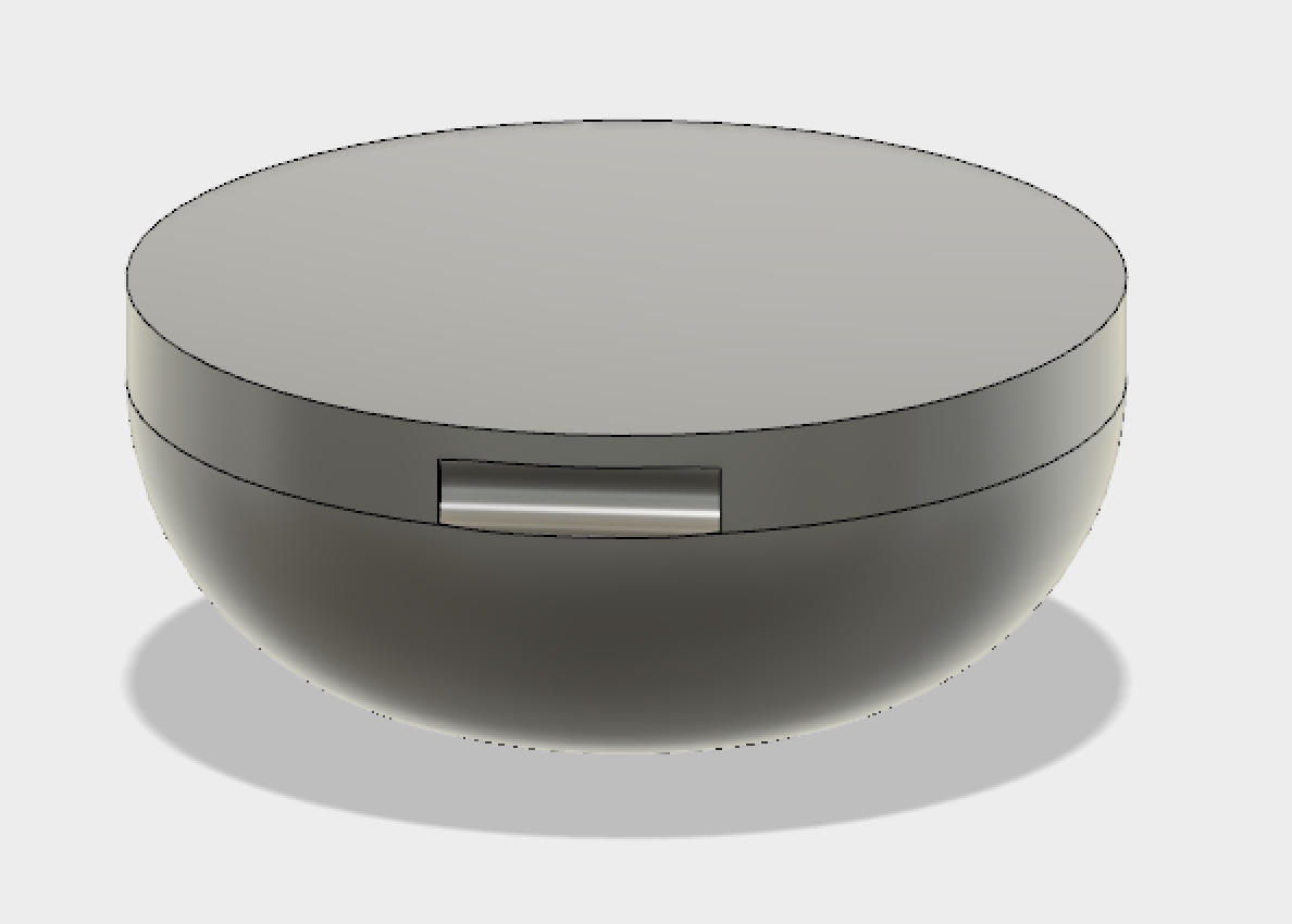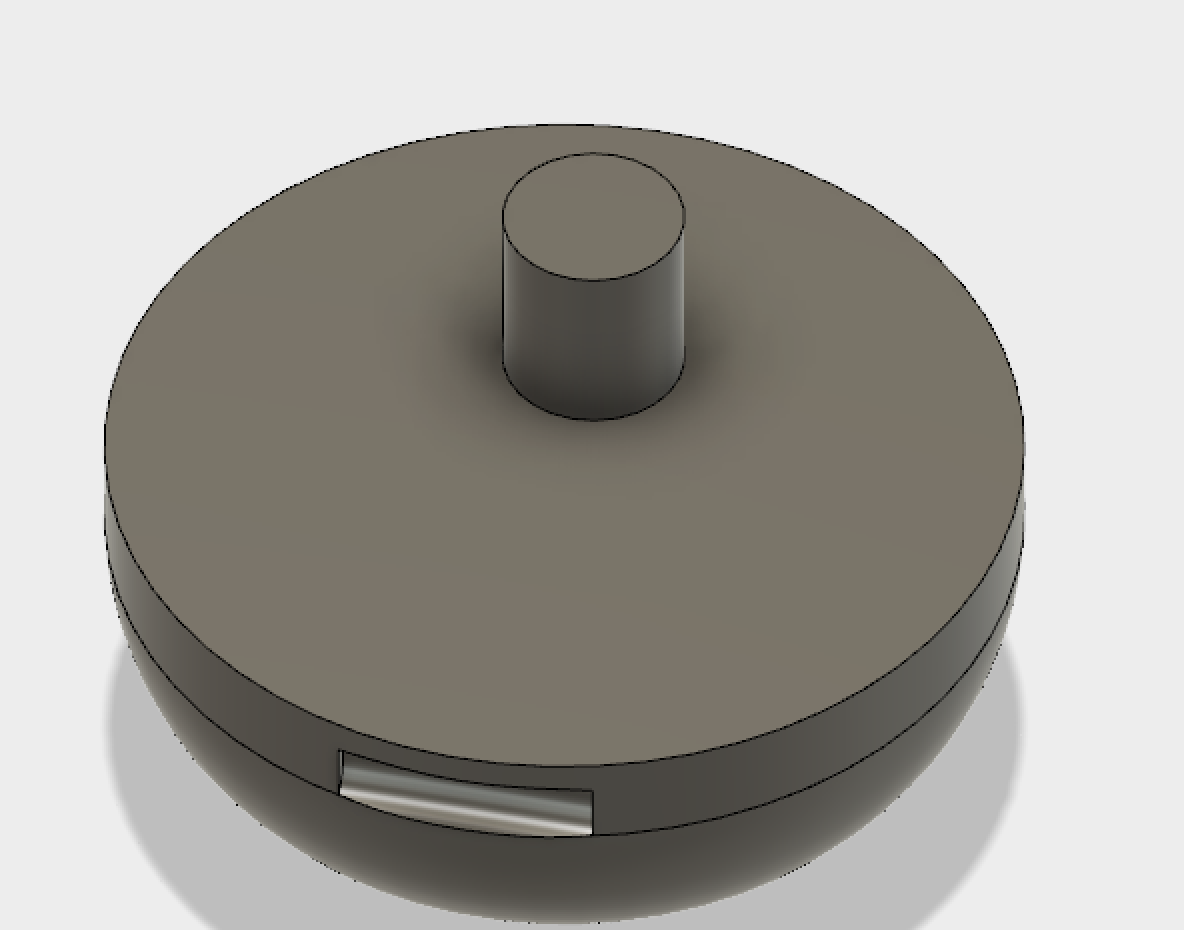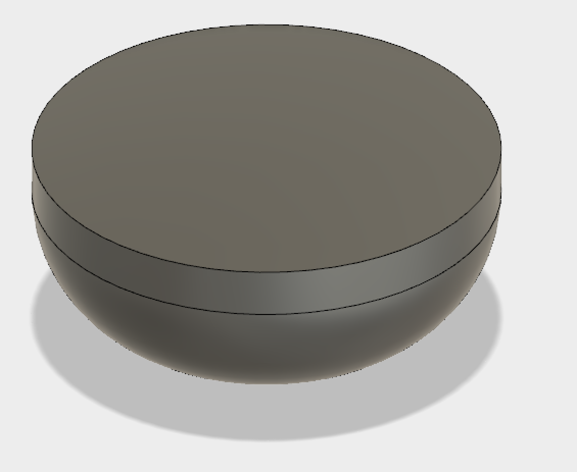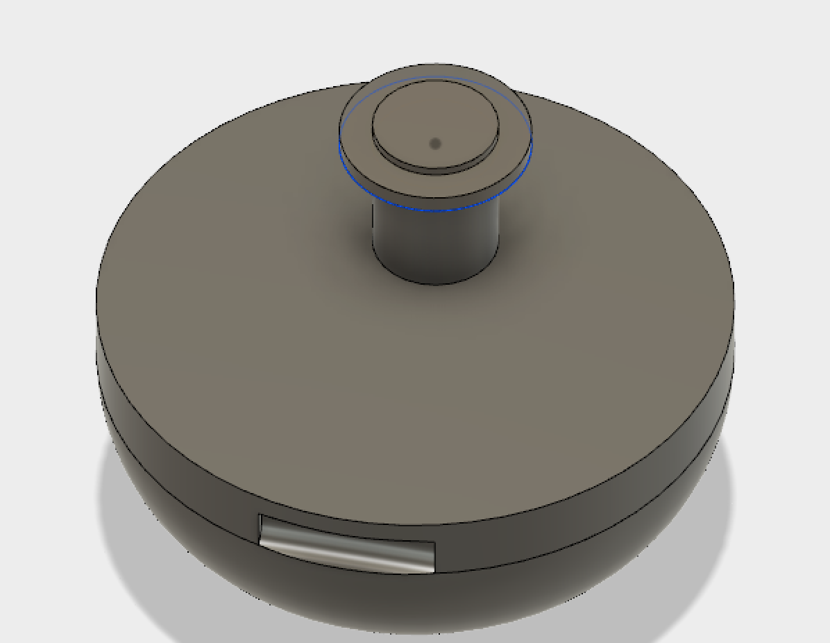 Then, using the the fillet tool, I curved the bottom of the circle, leaving a bit of the bottom part alone to make the flat surface at the bottom, and leaving a bit of the extruded part to later add my button, then made a new component from the body. This is the result: