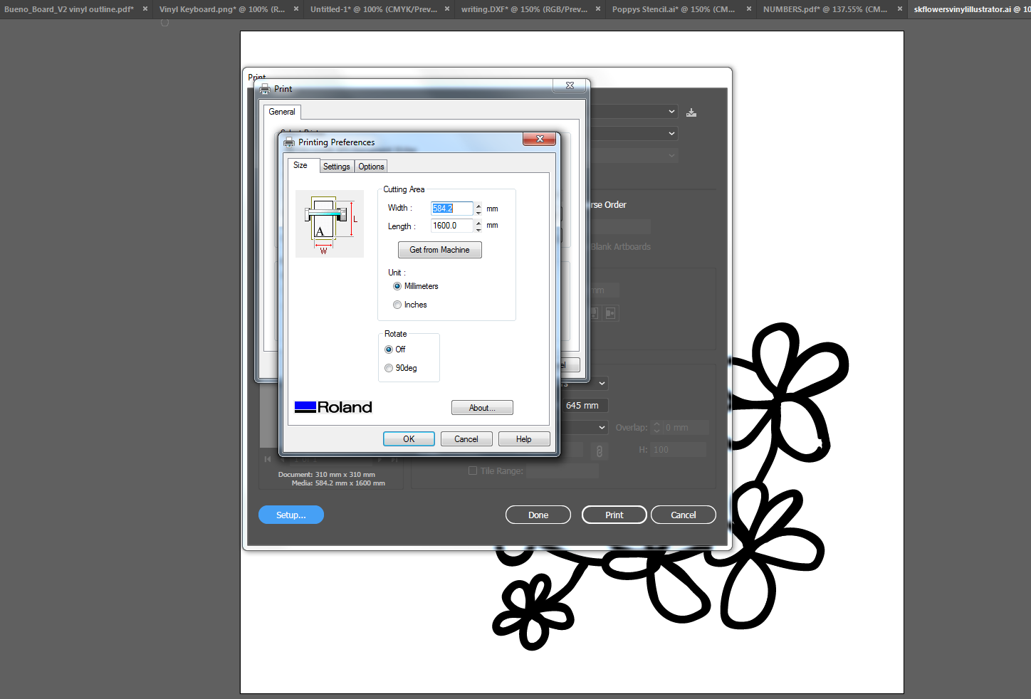 This will start the automatic cutting area determination. The cutting width and length will appear on the screen once the machine stops. Make sure it is accurate