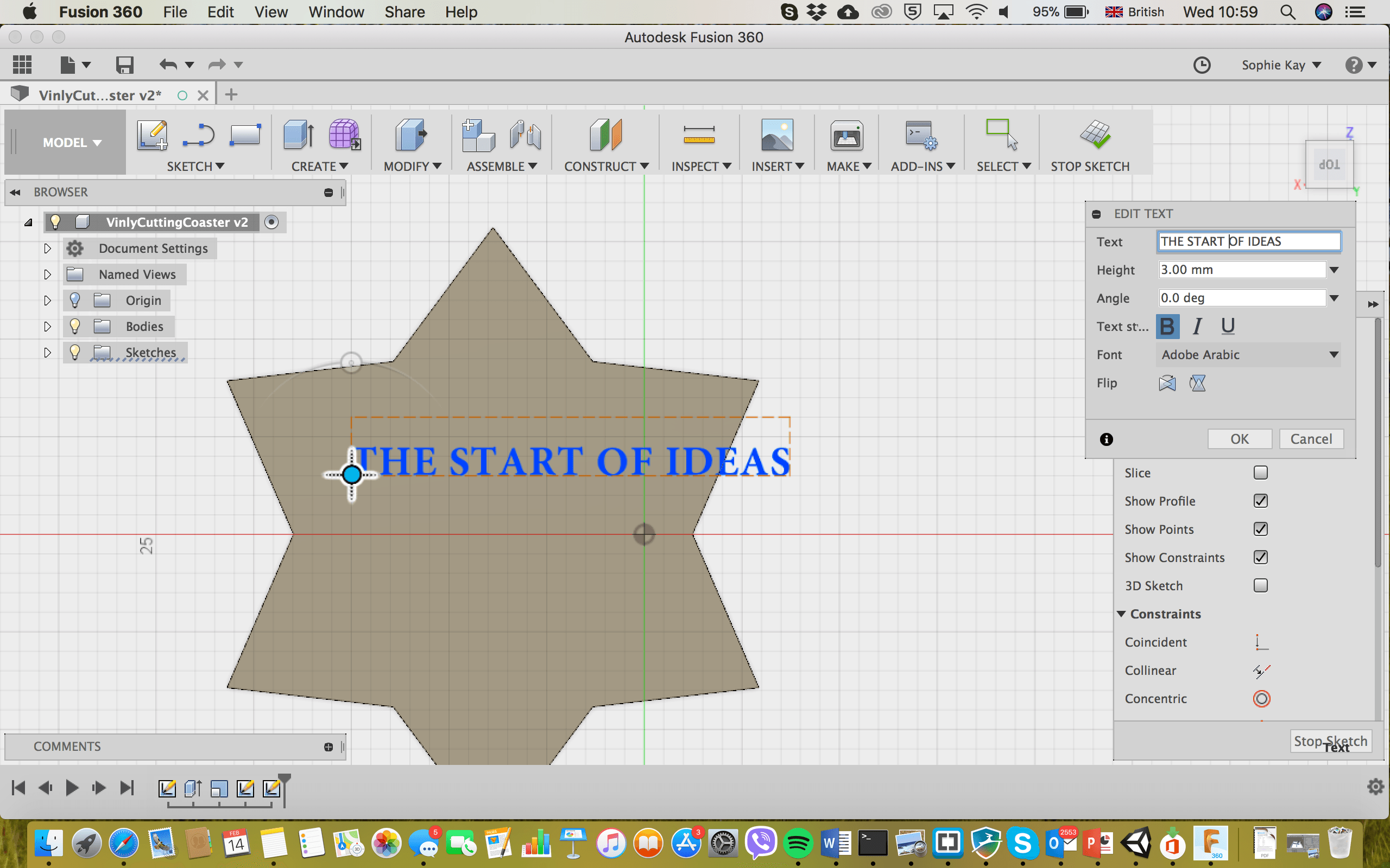 Finally when I was just messing about in Fusion trying to create different shapes using tools that I had not used before, I decided to make a cool looking tea coaster with a little saying on it.