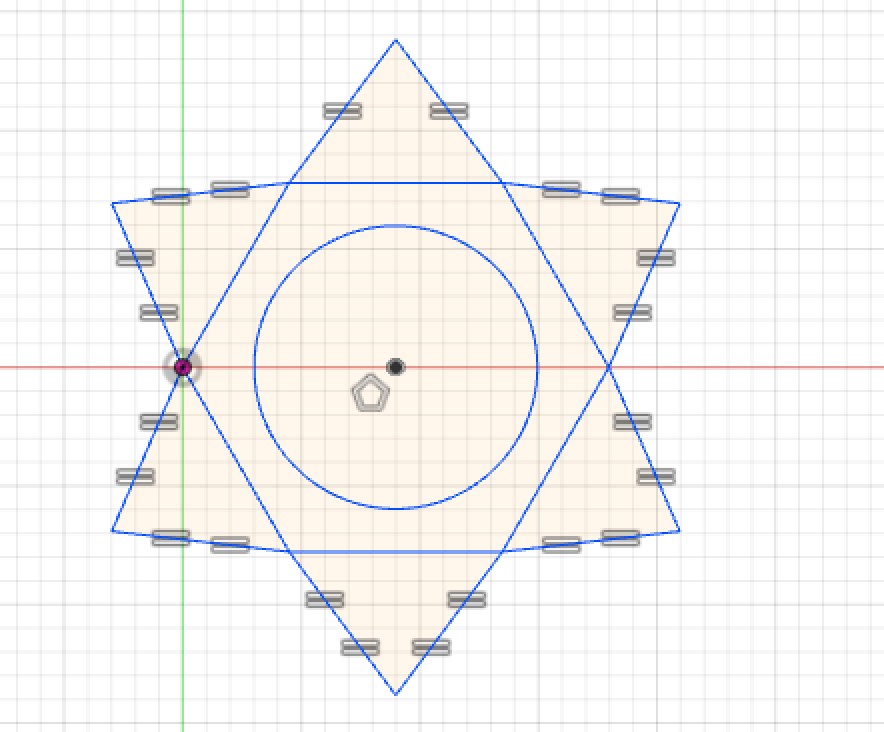 To make the star in Fusion I made a new sketch and made a "Circumscribed Polygon". From there using the line tool I made a very rough version of the points of a star. I then made one stars corner the way I wanted it to be fored. From there I used the "equal" in the "Sketch Palette" tools list to set all the other corners equal to the first corner. Initally I had attempted setting them equal to the corner before it, but it set me up for too many issues as sometimes they weren't the same. I am not sure how, but it made more sense in the end to just do it from one point rather than multiple ones