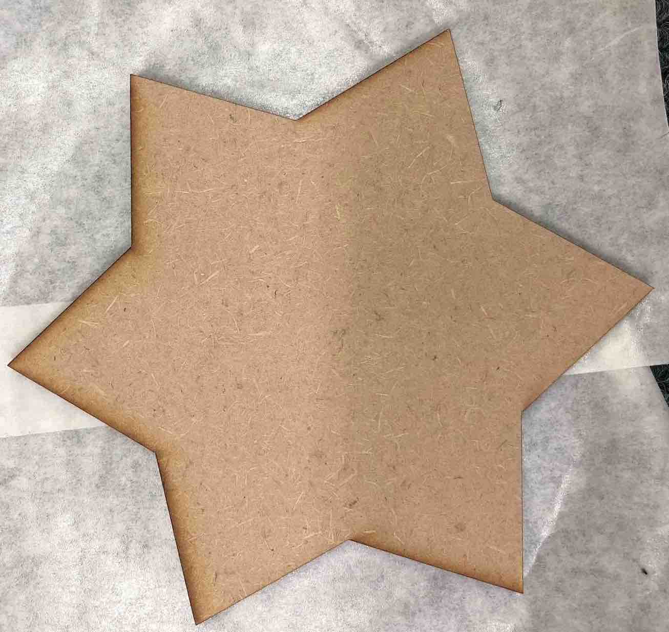 In order to stick the sticker on the laser cut star, I had used tape to both peel it off and to help me put it onto the wood. It was a very hard job that required precision but it worked out. There was only a little bit that had overflown but I sorted that out by using a knife.