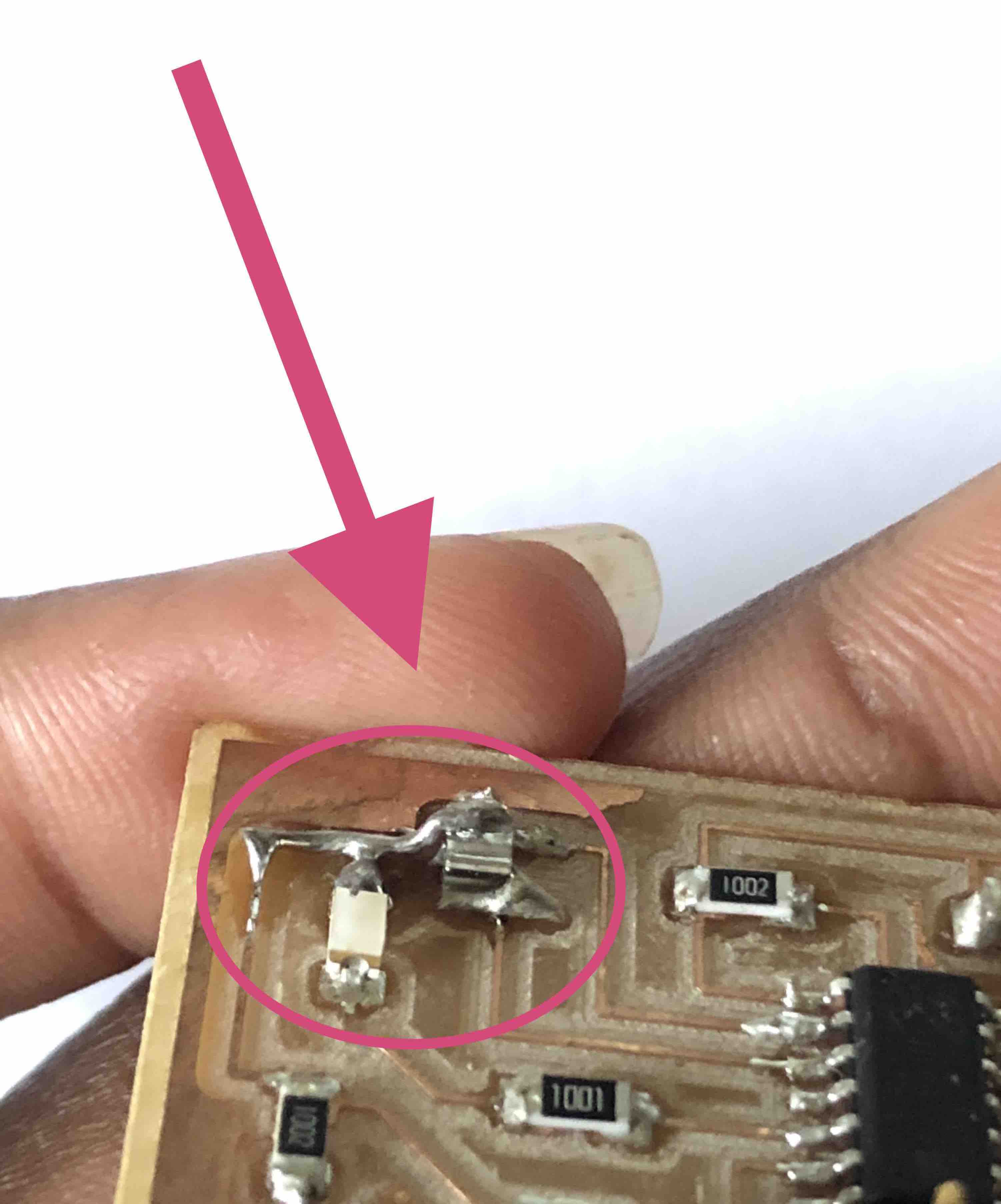 So I took a knife and bascailly scratched the copper area around the pins so that the current flow doesn't leave.