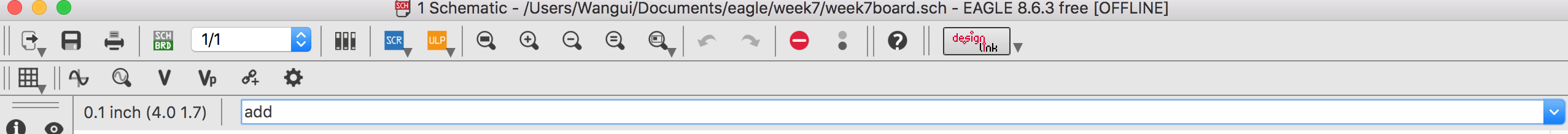 First things first, in order to start adding components to create my board on Eagle, I needed the correct components. This is an essential step beacause if I use incorrect components, when I go to export the .png of the board and then later cut it, it will not match up to the components I intend to use.