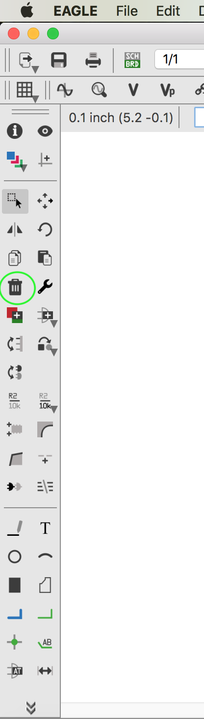 To then delete them, say you accidentally connected two traces together that should be together, or you want to put it elsewhere, you click the trash can button on in the tool bar on the left side.