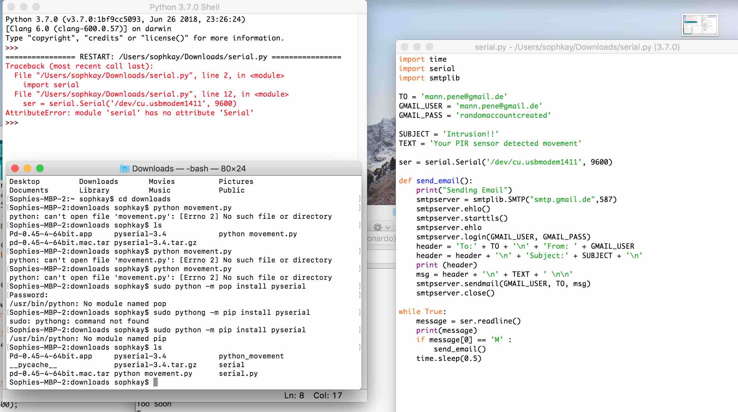 But the Arduino code did work the way it was meant to, which is how I know that the problem, other than obviously the Python's error message, is with Python.