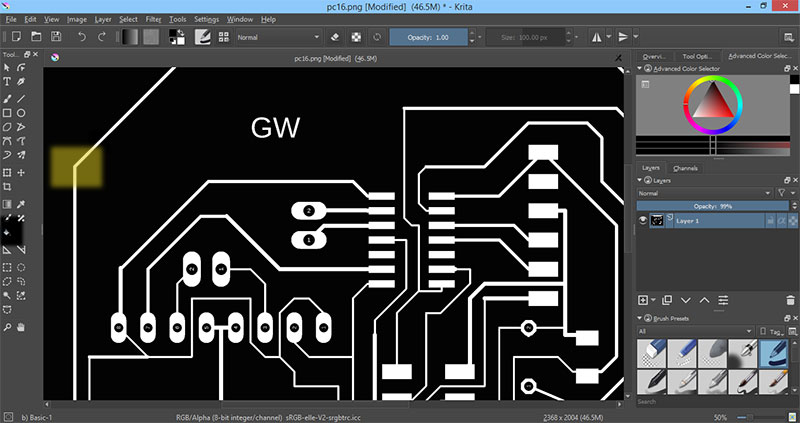 i am using this software for making trace path , drill path and cut path for my pcb board ,this is really easy software much more similar to Photoshop the tools i used basic tools for this operation