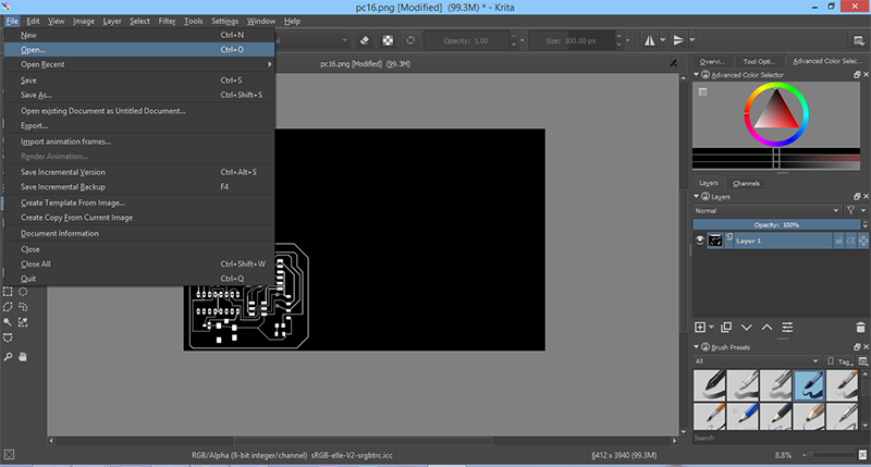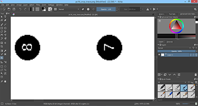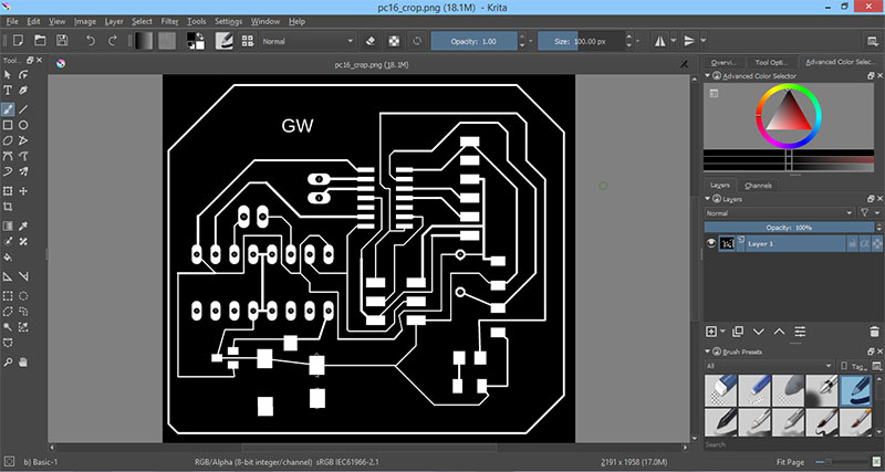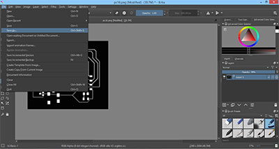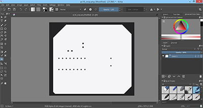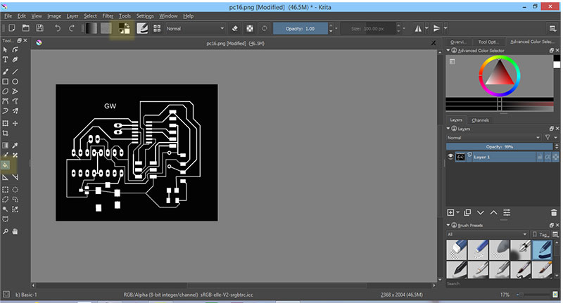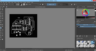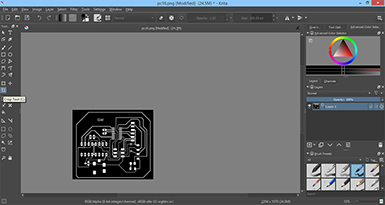 step 3 use cropped trace image to make drill file for this you need to use fill tool for this change color from top from black to white and fill white and again change color from white to black and fill the numbers inside holes with black