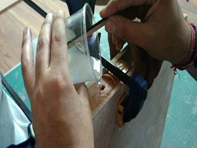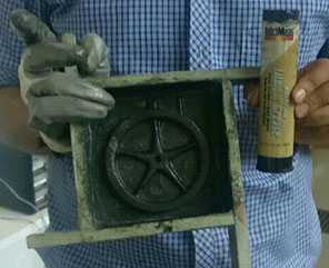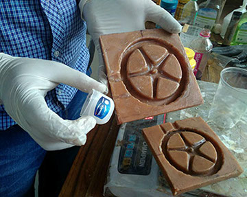Step 4 Pore the material in the mould as shown below for this first pore small cavities in your mould than outside to that so that air will not get trap in your cavity and keep it for atleast 16 hours as setting time given in instruction