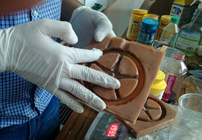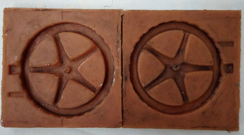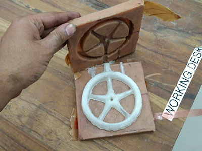 Step 2 : Making Negative mould from positive: This can be made by pouring liquid and somewhat flexible material or with such material that can be used to make multiple parts (casted) out of it. For example Rubber mould