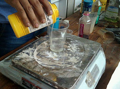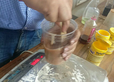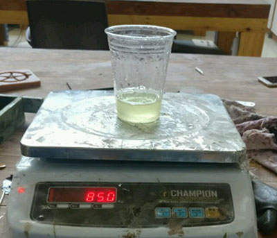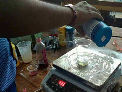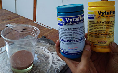 for preparing mixture of rubber solution you have to mix two compound as per direction given on their box here i used urathane vetaflex-40 so i mixed them equal by weight as shown below