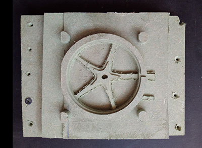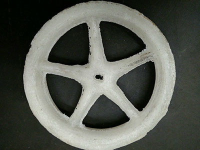 1 In my design of mold , I made runner and riser position at center of periphery of wheel and also which is wrong as you see i got notches , Mark of runner riser on periphery which affect the smoothness of wheel on moving , you should give position of runner and riser on top on any side