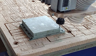 you have to clamp material tightly to bed as i used machine screw to clamp my material once material is clamp you need to set origin which is at one of the corner of your material for this you need to set certain control on shopbot software