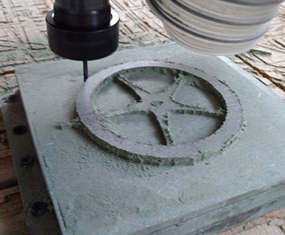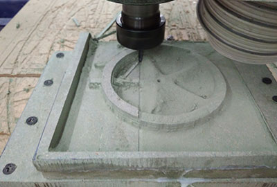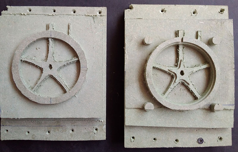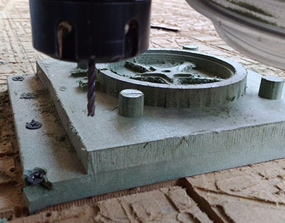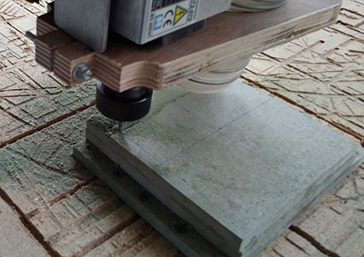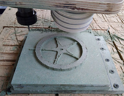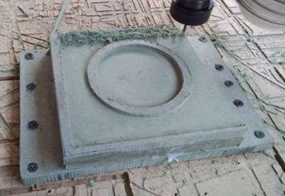 One of my fellow used green mdf for cnc milling and he found very good result with that and we have lots of this pieces in our lab so used green mdf for mould milling i stack 3 mdf pieces two 15*15 cm^2 and one of 15*20 cm^2
