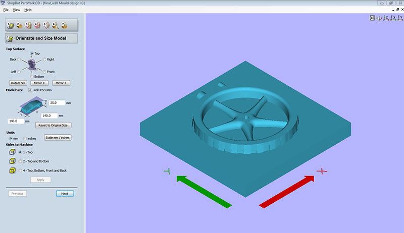 1 On opening partworks 3d it ask you to import file in .stl format and go next to orientation and size model, here it automatically takes body size select top surface for machining