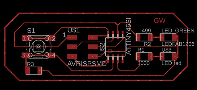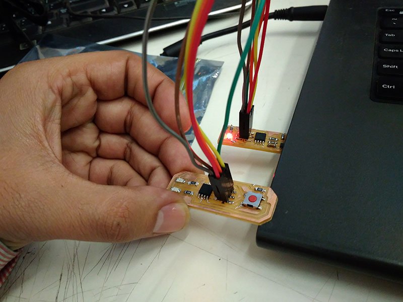 In this week i am using same board which i made In week 7 for programming using fabisp , i used Arduino board to program my board in week-7 where I explained steps of programming and show led blink on pressing button .I have used 2 led and button in my board which i will program using fabisp