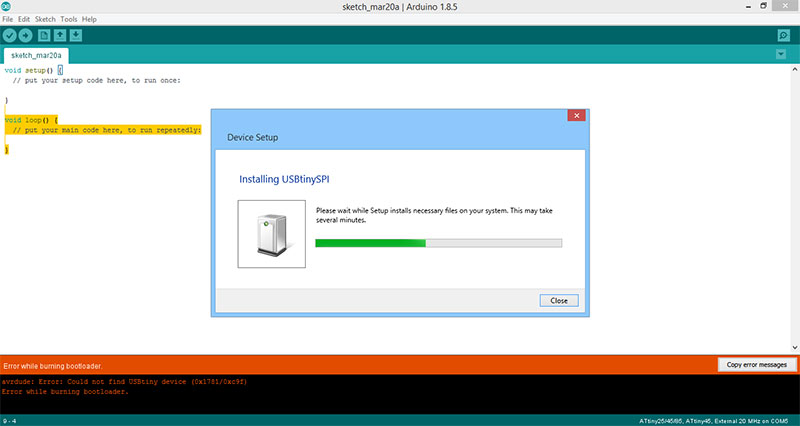 For resolving this error we need to download usbtiny isp driver here is link for downloading drivers from adafruit