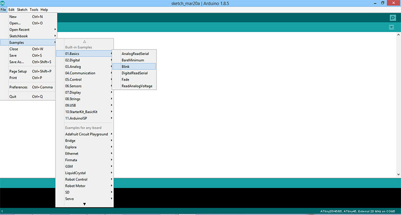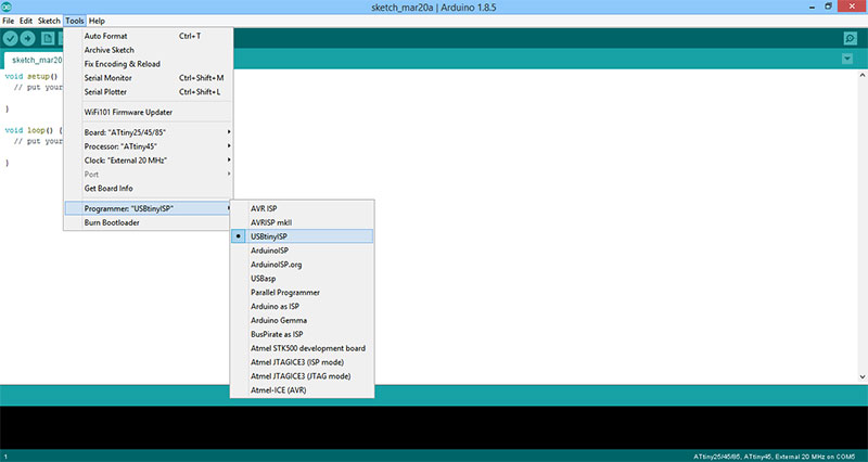 Step 2 Program Board using Arduino as IDE and fabisp as programmer