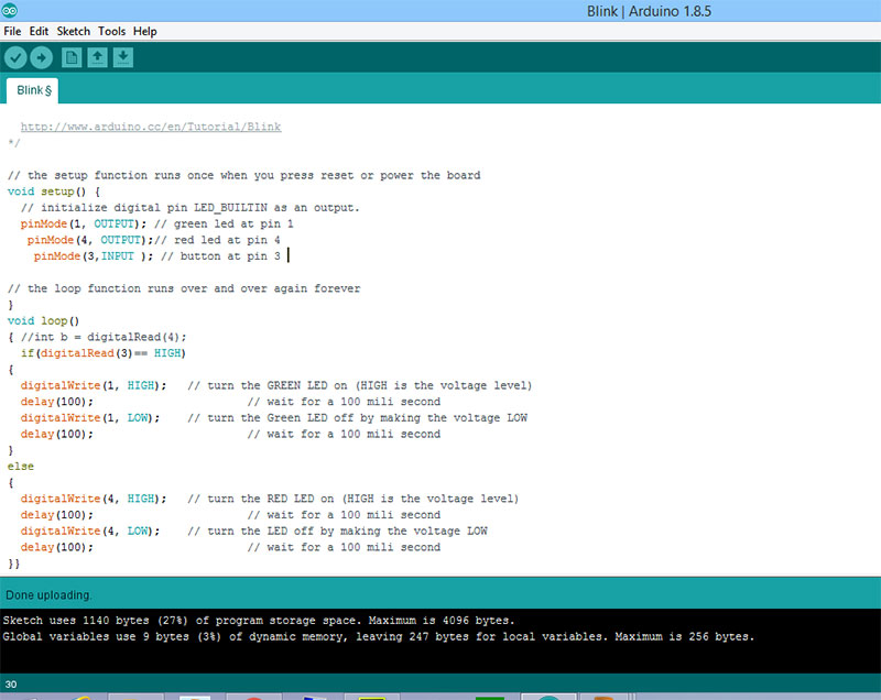 i use the blink code ( syntex avaliable in example ) and did some modification as i was easy for my as i did simillar thing in week7 where i directly program my board using arduino