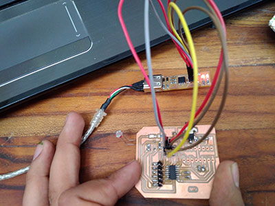 I did this work in project development week , here i am writing this as i do want to test my final project board for input devices , so use IR sensor which i connect to my board , just like above board you can also program this as it have 328P AU ic so you need to change the board setting while uploading the code and connect all the programming pins such as miso , mosi , reset , vcc , gnd and sck of board to respective pins of fabisp or arduino based on with what you are programing this board