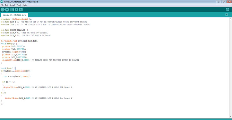 i used pin 2 and pin 0 of my board to make it tx and rx pin as using software serial i can assign any pin to rx and tx for serial communication as i used two same board so this pin are same in both boards