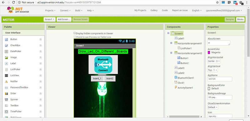 This is simple app in this i have used two buttons for two boards i.e for board 1 and board 2 and bluetooth for connectivity i.e it will connect my app with board