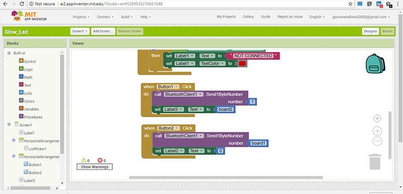 glowing so i come to know that my board is connected and getting power and for led A i control using mobile application