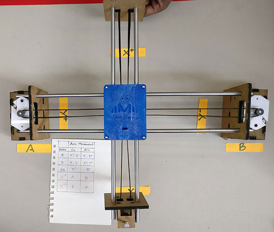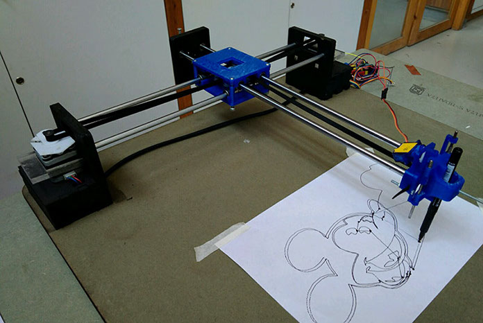 1 we seen many ploters all are having one motor in x axis and another motor in y axis and x axix is on top of y axis as this geometry give instability in design due to load distribution and in this one have both the motors on same axis i.e on y axis and one pully holder and end factor on x axis as we get good static balancing in this structure
